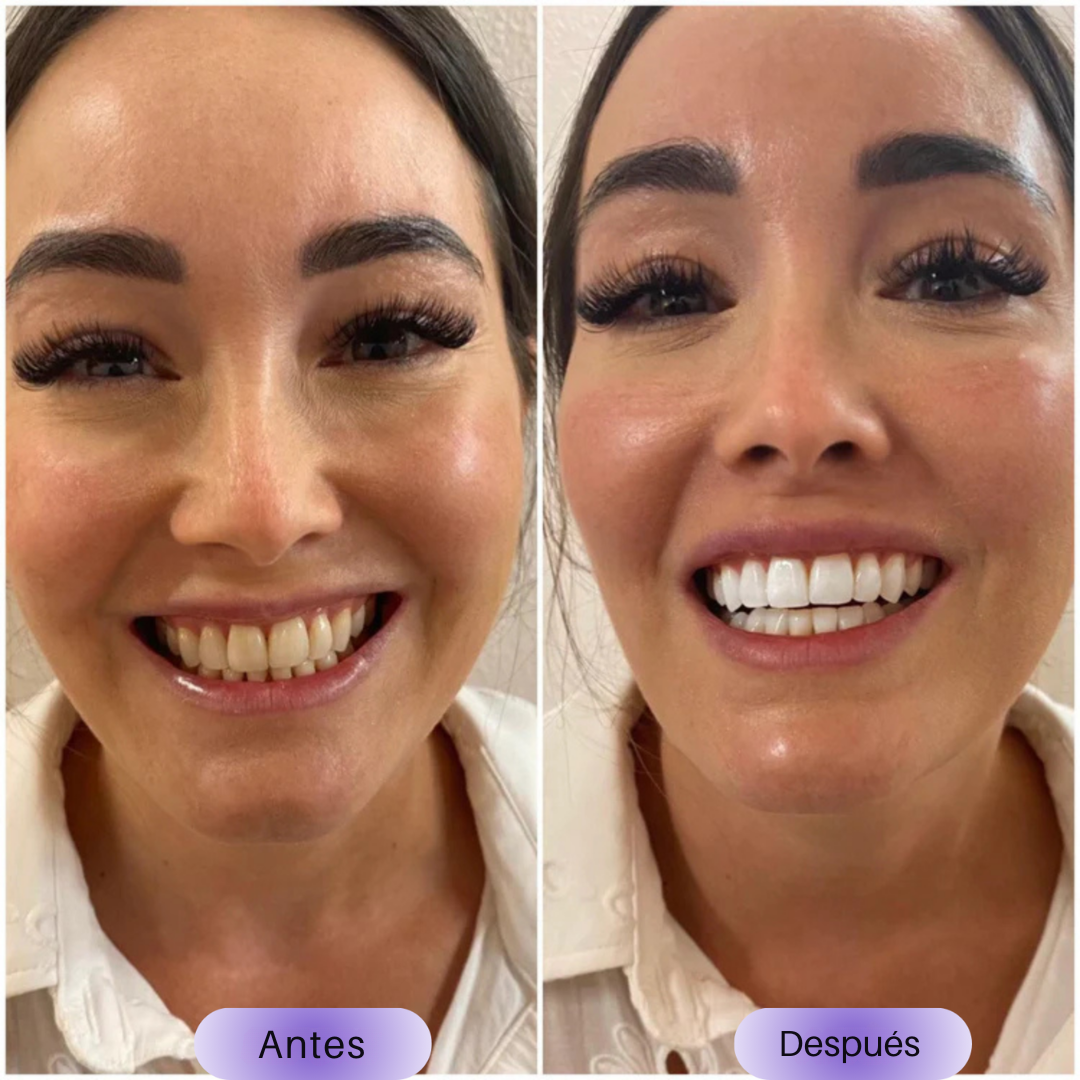 VelviSmile ofrece un resultado visual instantáneo y natural, sin el costo ni los efectos secundarios del blanqueamiento profesional.