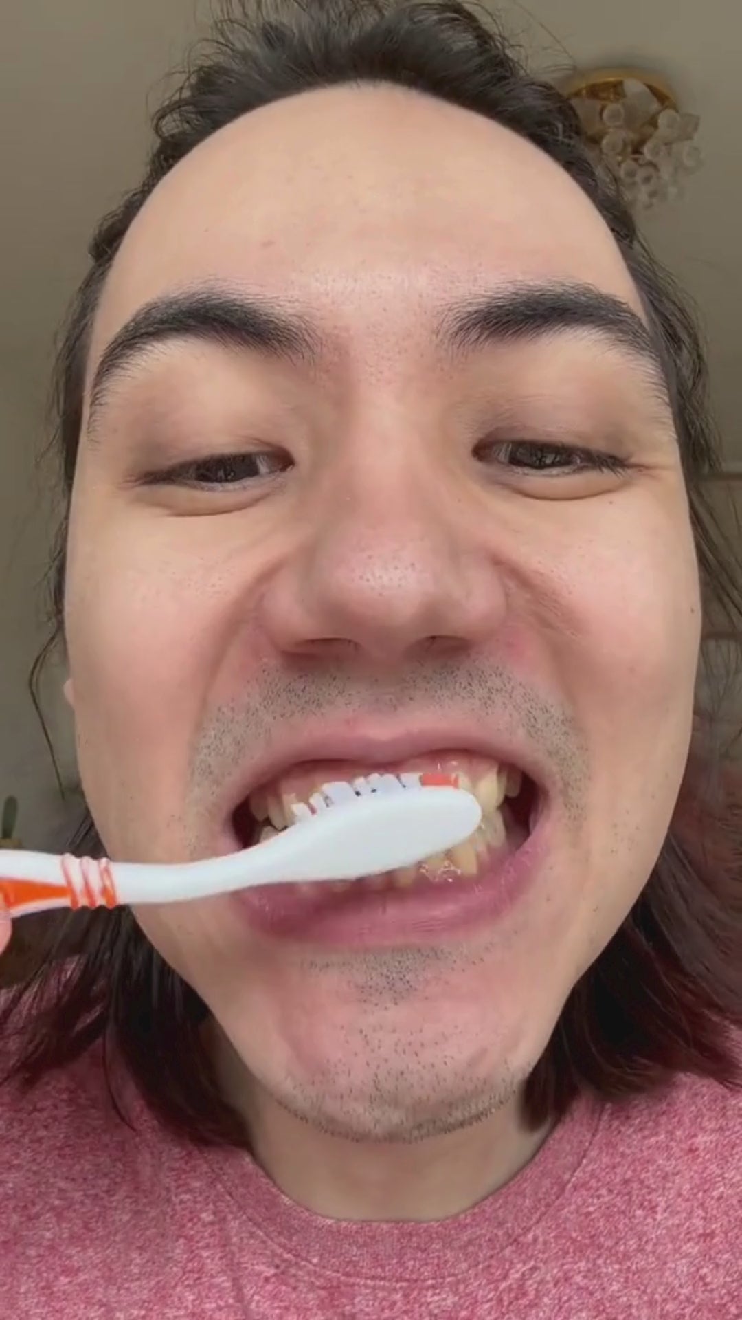 Cepíllate los dientes con tu pasta dental habitual y enjuágate bien.